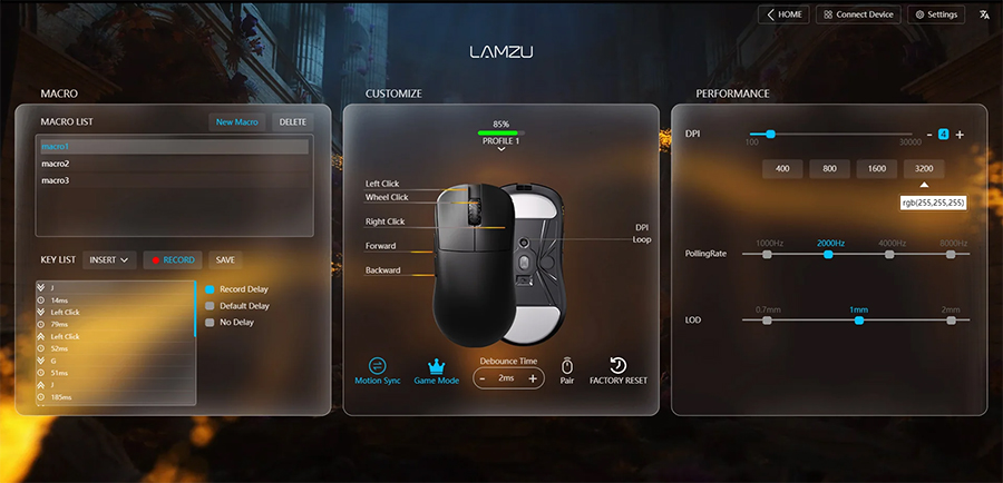 | Polling Rate | 2000 Hz, 1000 Hz, 4000 Hz, 8000 Hz |