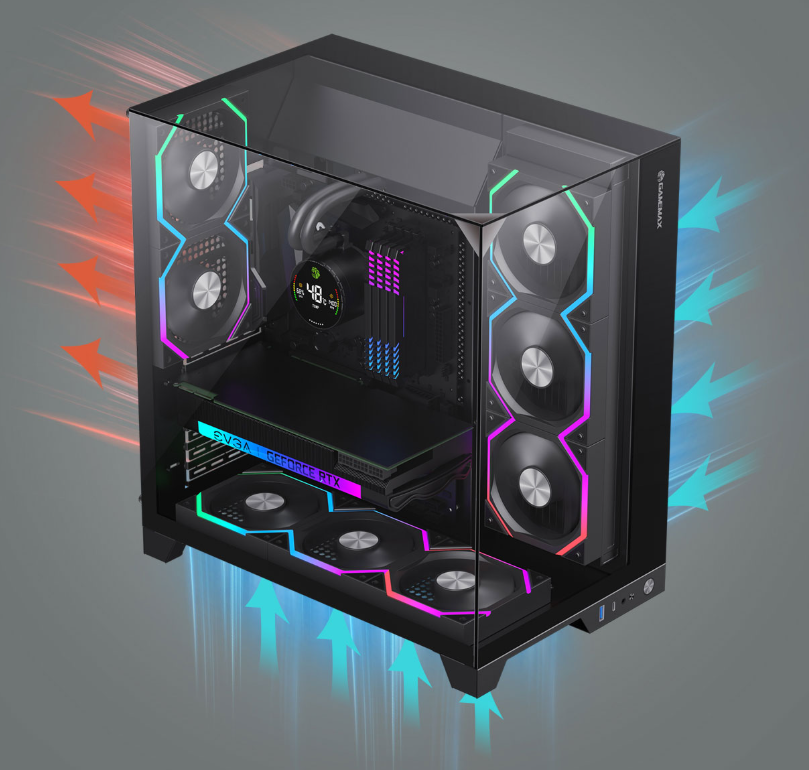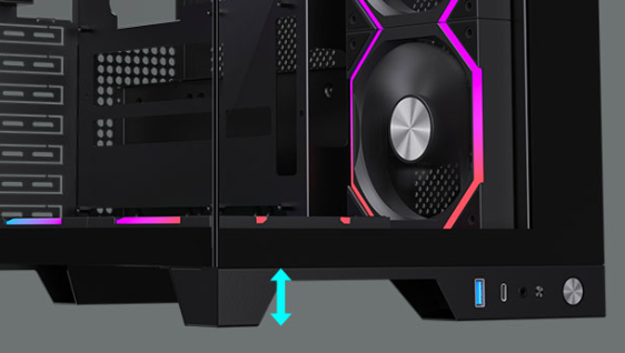The case's elevated design and ample bottom air intake increase airflow, ensuring rapid cooling of your hardware. |