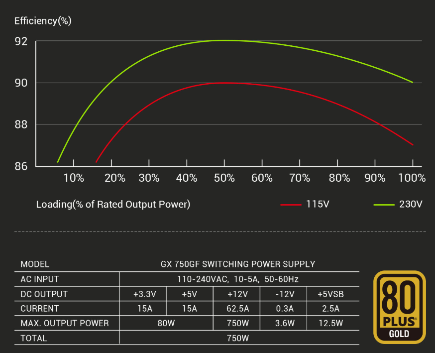 | Certified | 80 Plus Gold |