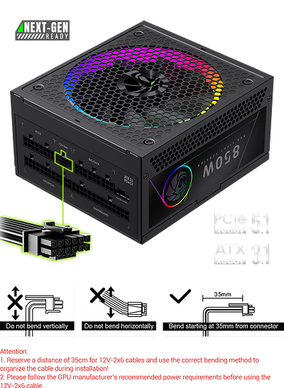 | Cable Configuration | 1x MB 24 Pin, 1x CPU 8 Pin +8 Pin, 2x GPU 8 Pin +8 Pin, 2x SATA, 1x PATA, 1x GPU 16pin 12VHPWR, 1x ARGB SYNC |
