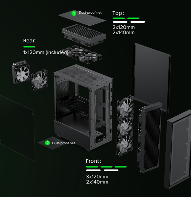 FULL MESH PANEL DESIGN, STRONG HEAT DISSIPATION |
