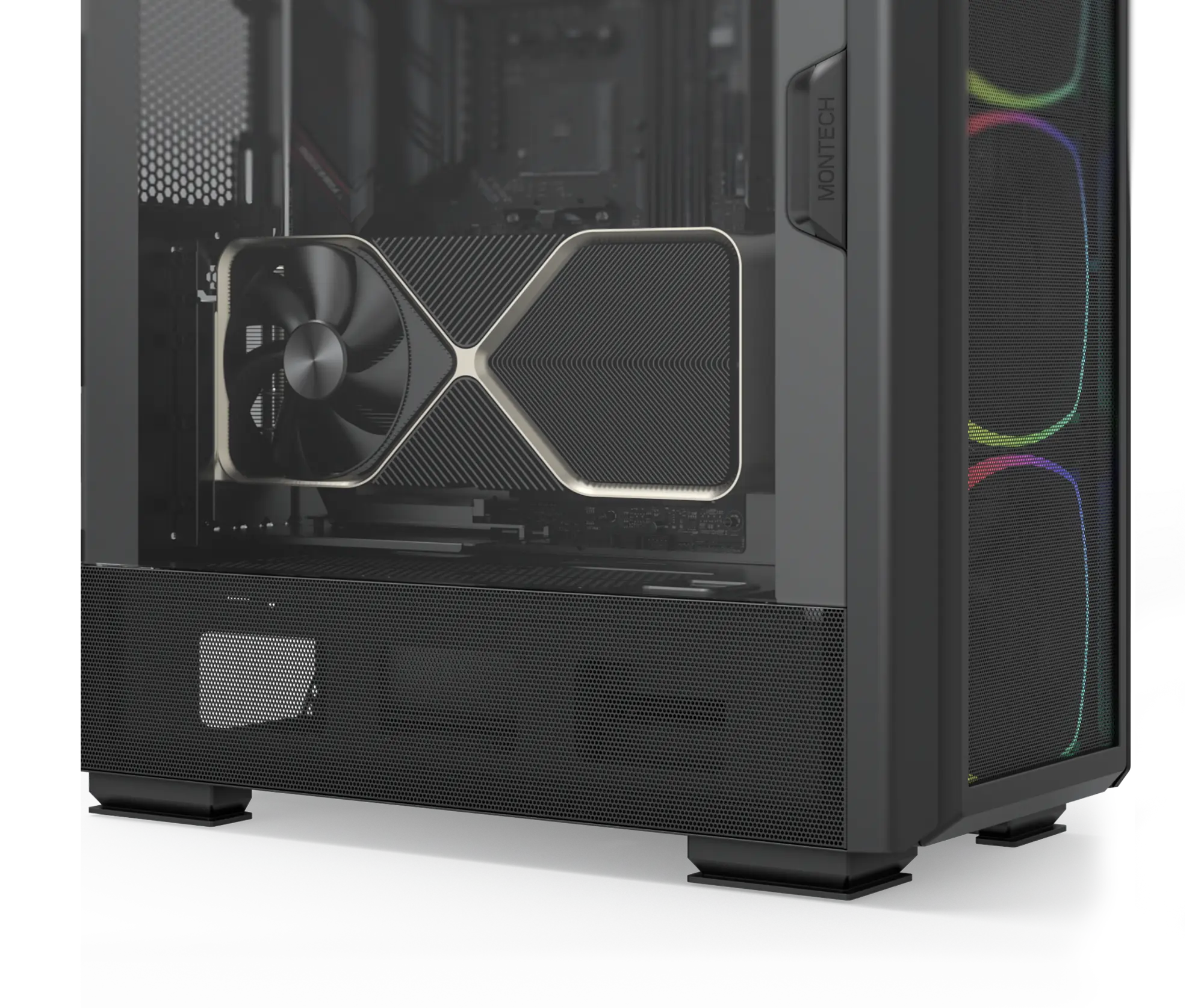 | Support for Vertical GPU Mounting All 7 PCIe slot covers are removable for MONTECH vertical graphics card mounting kit (sold separately). Time to enhance your GPU thermal and aesthetics! |