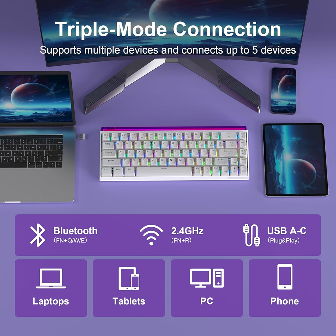 | Savienojuma veids | 2.4GHz, Bluetooth, USB |