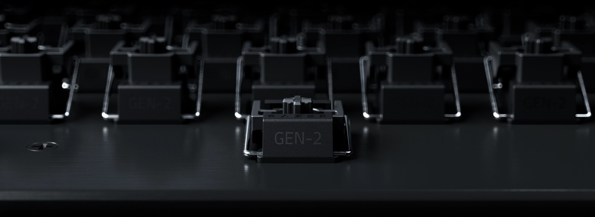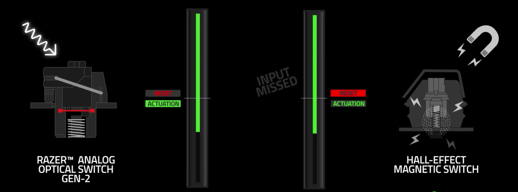 RAZER™ ANALOG OPTICAL SWITCHES GEN‑2 Rapid Trigger and Adjustable Actuation Max out on precision and response with next-gen switches featuring Rapid Trigger for ultra-fast repeated inputs, a 0.1–4.0 mm adjustable actuation range, and a 100-million keystroke lifespan.