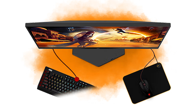 Our new stand. Co-designed with eSports professionals, allows you to maximize free space for all your peripherals. The base of the monitor is designed to reduce the footprint of your monitor on your desk, and even allows you to place your keyboard on top. The stand includes cable management to keep your desk clean. No matter what genre you compete in, we want you to feel like a pro. |