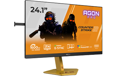 Counter-Strike Pro eSports Design Sleek CS2-inspired black and gold design with a 24.1" Fast TN panel, 610Hz refresh rate, and 0.5ms GTG response for ultra-smooth gameplay. Features VESA DisplayHDR 400, 99% sRGB, AOC G-Menu, Dynamic Crosshair, and Motion Blur Reduction. Ergonomic stand and versatile connectivity (DisplayPort, HDMI, USB) ensure pro-level performance. |