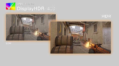 Vesa Certified DisplayHDR™ 400 Even the lowest level of High Dynamic Range (HDR) feature poses a significant upgrade to common monitors. The peak luminance of 400 cd/m² enables your display to hone the picture quality with a manifold colour spectrum and more diverse contrast. The VESA-certificate ensures richness of detail and realistic portrayals of game and film worlds. |