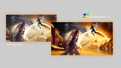 Vesa Certified DisplayHDR™ 1000 Vesa Certified DisplayHDR™ 1000 delivers a dramatically different visual experience. Unlike, other 'HDR compatible' screens, true DisplayHDR™ 1000 produces astonishing brightness, contrast and colors. With the help of local dimming and super high peak brightness up-to 1000 nits, images come to life with advanced highlights featuring deeper, more nuanced blacks. It renders a fuller palette of rich new colors, delivering a visual experience that engages your senses." |