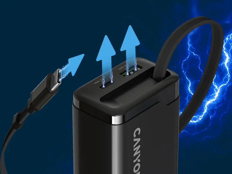 Pull to charge All your power in one motion for instant charging — no extra cables, no setup. Just pull, plug in, and power up wherever you are.