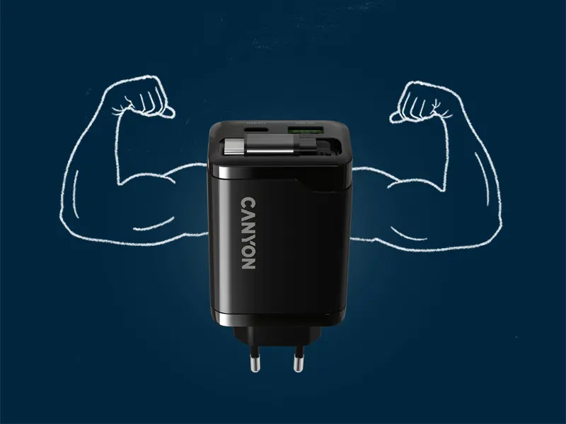 Wall Charger OnCharge 65RС The OnCharge 65RС Wall Charger is a high-performance device for users who need speed, efficiency, and reliability. Powered by advanced GaN (Gallium Nitride) technology, this 65W charger delivers power in a compact form. It accelerates charge times for laptops, tablets, and smartphones without the bulk. GaN technology maintains energy efficiency, low heat generation, and a smaller footprint compared to traditional silicon-based chargers. With a built-in 68 cm USB(C) cable delivering up to 60W, an additional USB(C) port offering 65W, and a USB(A) port providing 30W, multiple devices can be charged simultaneously. With this charger, powering up a laptop during back-to-back meetings or topping off a phone and tablet at the end of the day is effortless. With an integrated cable, there’s no need to carry extras, which reduces cable clutter. Constructed from flame-retardant PC material and supporting universal 100–240V input, the OnCharge 65RC is durable and travel-ready. Thanks to compact dimensions, it’s easy to pack, and the EU plug ensures seamless compatibility across Europe. Fast and intelligent, this wall charger keeps pace with modern life.